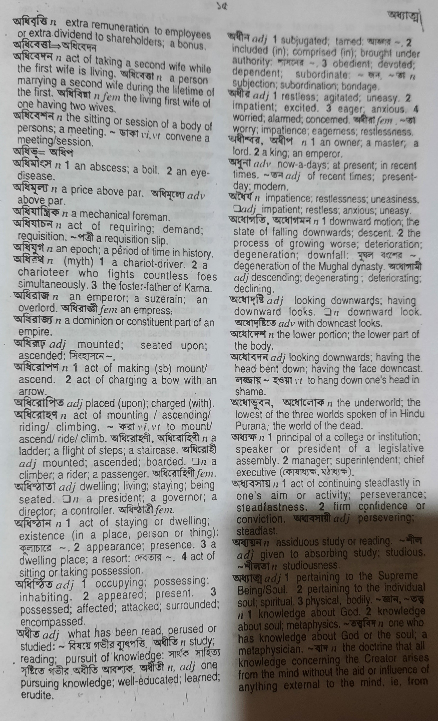 - পদ ও অর্থান্তর নির্দেশ: অভিধানের কোনো শব্দ যদি একাধিক পদরূপে ব্যবহৃত হয়, তবে পদান্তরচিহ্ন-সহ অভিধাসমূহকে পদ অনুযায়ী এবং সে অনুসারে সংখ্যানুক্রমিকভাবে অর্থান্তর নির্দেশ করা হয়েছে।